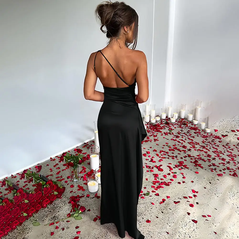 fabriquée à partir de fibre de polyester de haute qualité, cette robe offre une élasticité et un confort exceptionnels. Le design long et tendance présente une taille haute, de grandes épaules fendues et un ourlet fluide pour un look unique et élégant.