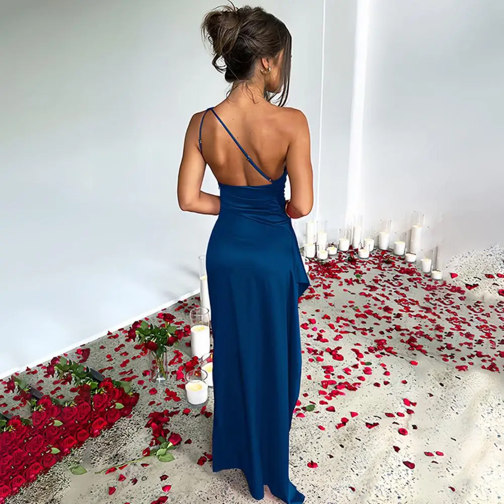 le design à épaules inclinées et la jupe longue de cette robe accentuent votre silhouette tout en offrant une coupe confortable.Montrez votre individualité et votre grâce avec l’ourlet fluide qui ajoute une touche de sophistication.
