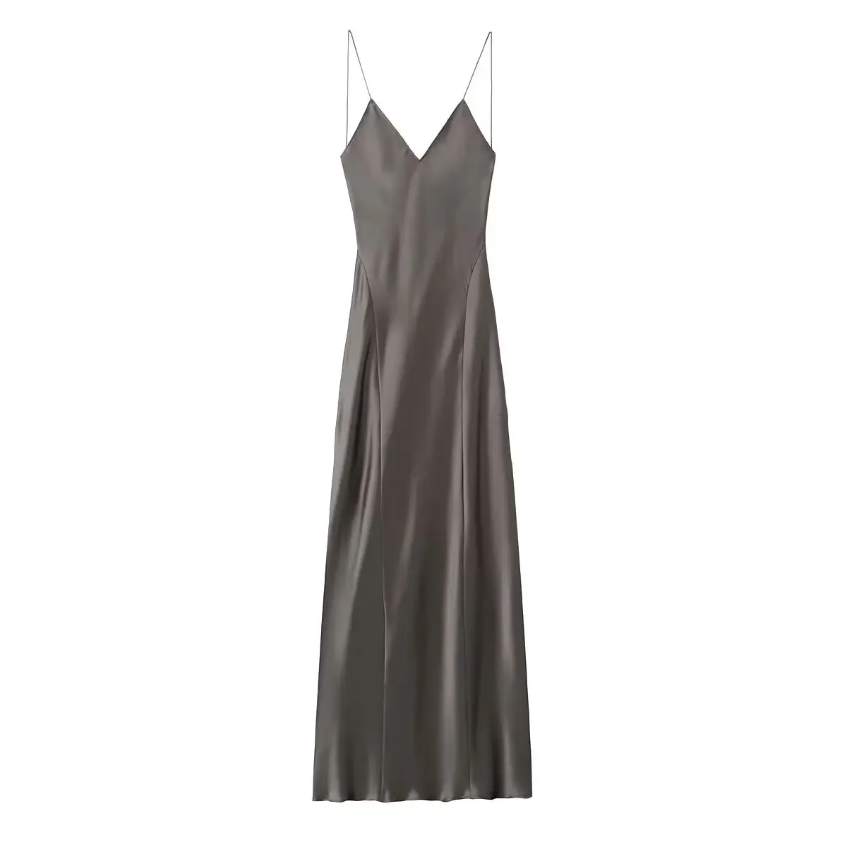 Robe Longue en Satin Dos auxpour Femme, Tenue de Soirée Vintage, Chic, Sexy, Col en V, Été 2024