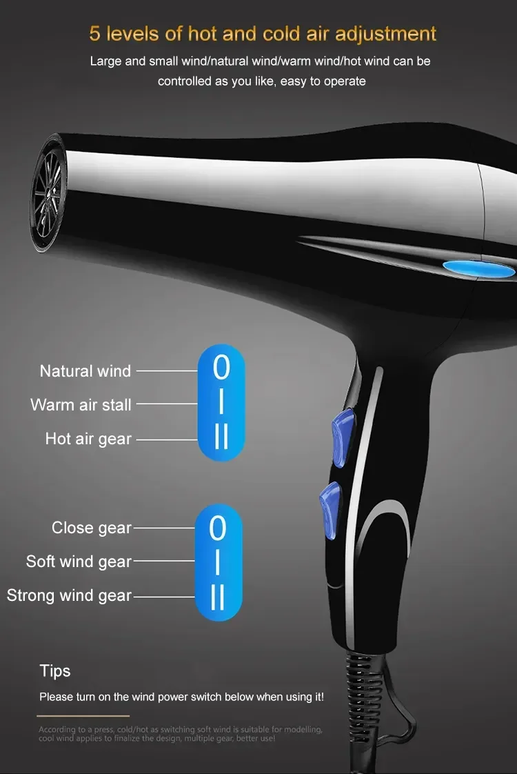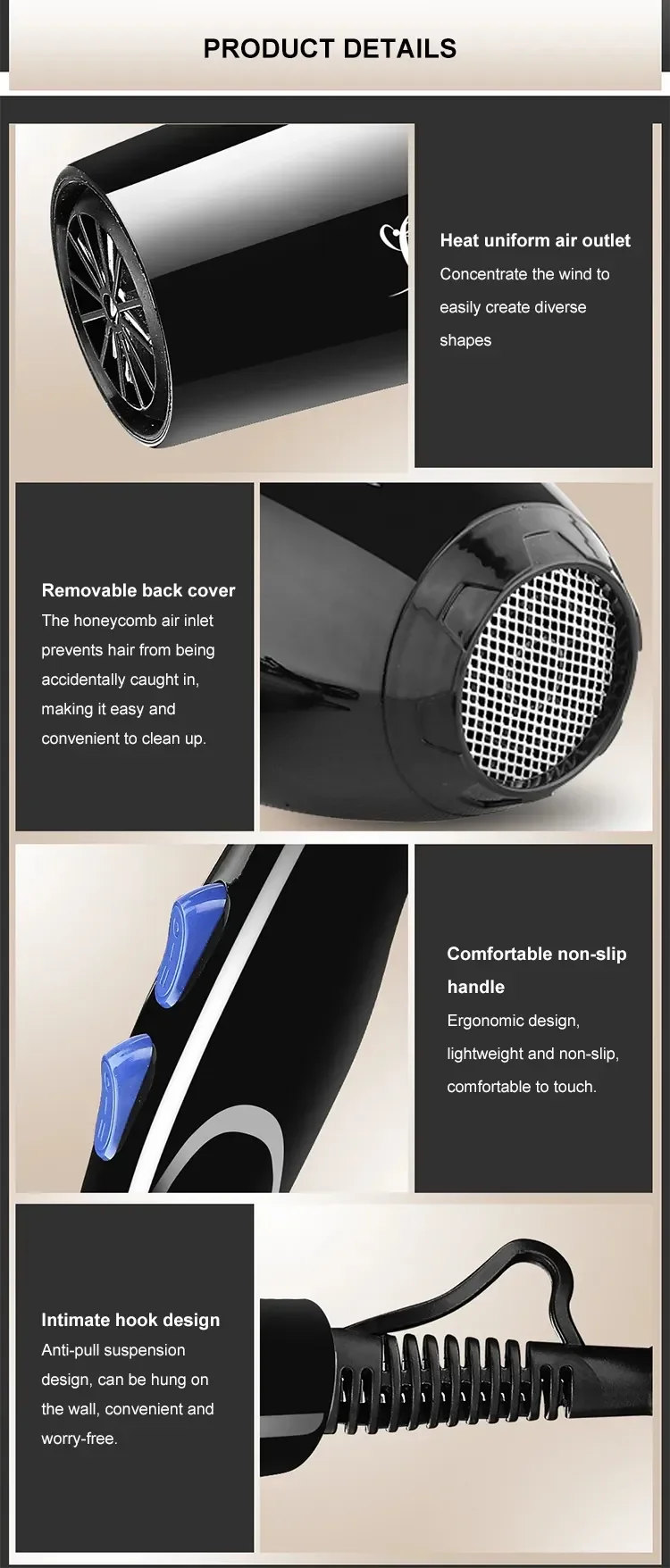 • Fonction Anion pour soin des cheveux :La fonction Anion de ce sèche-cheveux aide à réduire les cheveux secs et à protéger les cheveux de la chaleur, offrant une expérience de soin des cheveux plus douce.