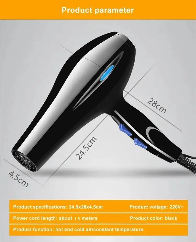 3. Pendant le processus d’utilisation d’un sèche-cheveux, si des phénomènes anormaux se produisent, tels que sentir une odeur étrange, entendre du bruit ou soudainement ne pas fonctionner, l’interrupteur doit être éteint en temps opportun, l’alimentation doit être coupée, la cause doit être identifiée, Et l’entretien devrait être normal avant utilisation.